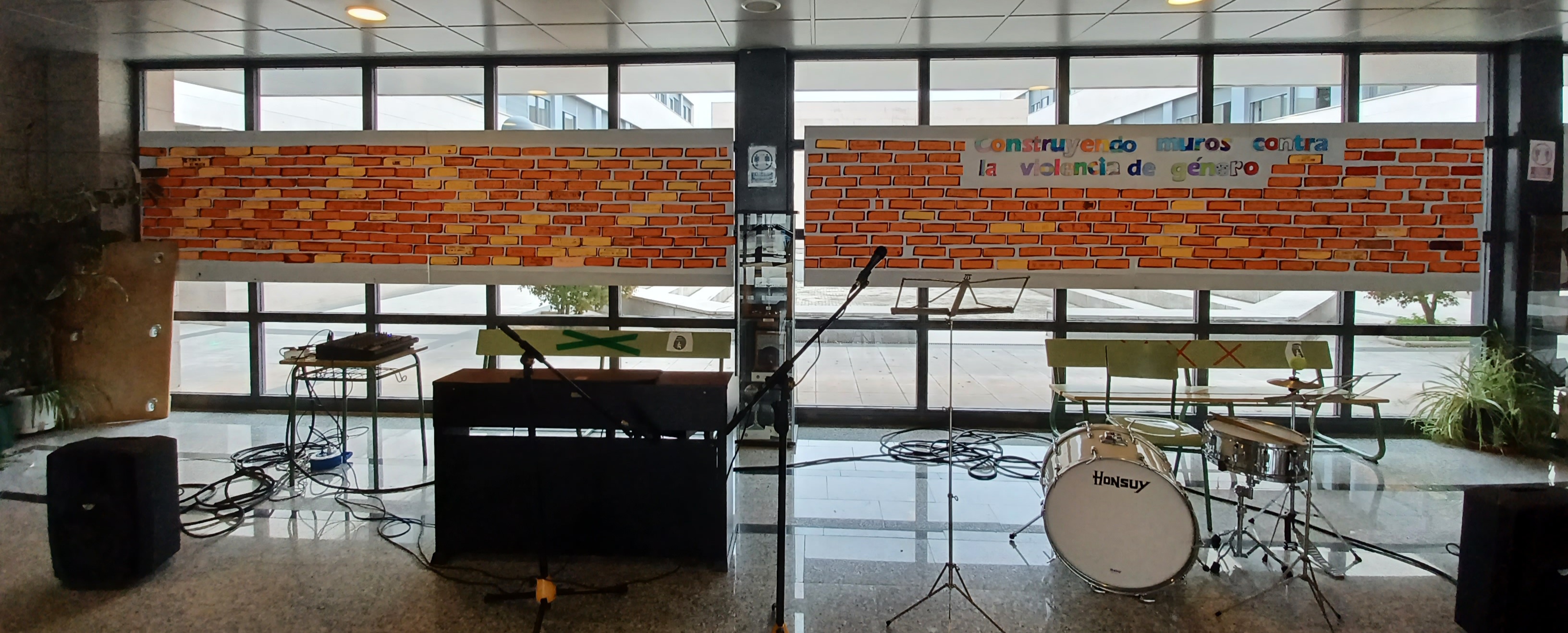 Ayer, 25 de noviembre, celebramos en nuestro instituto el Día Mundial Contra la Violencia de Género. El alumnado de ESO construyó un muro contra la violencia de género y en el recreo alumnado de 1º Bachillerato de la asignatura Lenguaje y Práctica Musical y de la ESO interpretaron la canción «Una puerta violeta en la pared»